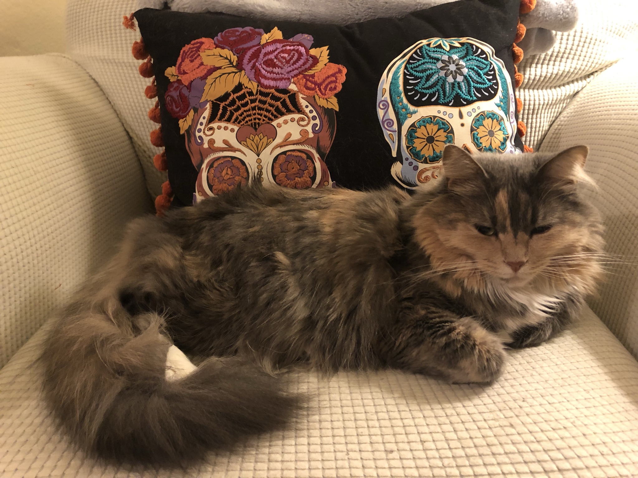 This crazed beast has decided that the tablecloth upon which my village sits is her personal plaything, and thus she has been the cause of several seismic events around town. Unfortunate to be sure, but then again, this is California we're talking about. An earthquake in October just gives me 1989 vibes. If you're thirsting for more Halloween village content, please enjoy this video in which I act as a human drone, flying in for those otherwise impossible shots: Thank you as always for accompanying me on this journey into my esoteric holiday decorating habits, and have a wonderful Halloween season! It's on a Friday this year, so for once you can go all out the night of and not have to worry about work in the morning. Unless you work retail, in which case, I wish you luck setting up all the Christmas stuff on November 1st. Just kidding! I know that stuff is already out.