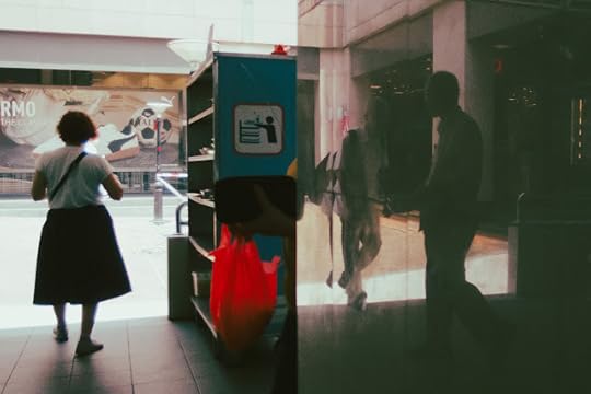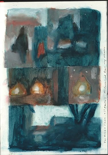 In Sept, as I was looking up prominent photographers to learn from, I came across youtube videos about photographer, Saul Leiter, and his pictures appealed to me. Have you heard of him? I'm new to photography, so I've only just discovered him. I also borrowed a library book on him and watched his documentary. I like that slightly abstract yet, kinda poetic, blurry, emotional look his photos have. And he seemed to like shooting into reflections. So in some of the photos I shot, I was trying that out. And I tried to create art with that similar look and feel. Rubbing oil pastels with my fingers produced very blurry edges so I used the edges of paper to create hard edges when I wanted to. This is one experiment that I've tried and liked. Let me know what you think.