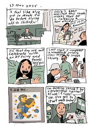 I drew this quickly before I started work this morning, using a G-nib dipped in indian ink. OK that slows things a little but I do like to have some fun doing it too. Dip pens make it more fun for me because they are more unpredictable. I also tried something different. I used a photo in my 5th panel. This comic is a quick ramble, but it was something I wanted to capture. I find it amusing that Ollie is so excited about NF's new album release on the 14th of November on Spotify. She has been waiting so long for this new album. To her, it's overdue. There is countdown timer on the NF Spotify page and she found that she will still be in school at the time of the album release. So she wants me to film the screen when it comes down to 0. She is calling tomorrow NF Day. OK I'm looking forward to it too!