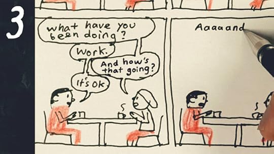 Here's a new class by me on Skillshare. I've been working on this these couple months and it continues my earlier comics classes on Skillshare. You might have seen this video on comics principles on Youtube. This Skillshare series I've been building expands and elaborates on the points in that video. This new course covers the small things I observe when I do conversation scenes. Conversation scenes are something that happens in most stories so I believe it will be useful. This one is for beginners and covers only a simple conversation scene (before I cover more dramatic scenes in another class later on).