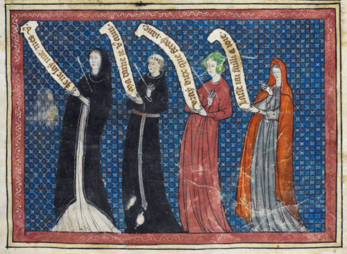 Female Lovers- and a Monk.By 1400, the French Court had founded the Cour Amoureuse, or the Court of Love, supposedly in honour of women. It first met on Valentine’s Day in 1400, ruled over by a ‘Prince of Love’ who was a professional poet. Noble ladies heard various love-poems and presented prizes to the winners. It sounds very charming until one realises that around 600 people took part. One can only suppose that, with those sorts of numbers, everyone probably went home with something out of the day.