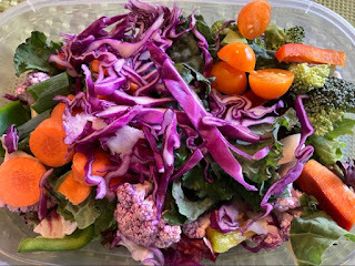 I have had two compliments on it today, by coworkers expressing a desire for such a salad. I’m sure it looks quite unlike anything they are going to see all day. Excepting the wrapper of the Skittles package, it is way more colorful than anything to be found in the vending machine, which my coworkers jokingly refer to as the Wheel Of Death.