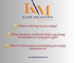 *Stay faithful to your writing during this busy season by downloading our 25 Reflective Holiday Writing Prompts. Focus on one prompt a day and see where it goes! BONUS: share the fruits of one of these writing prompts with us at kate@katemeadows.com, and we might feature it in an end-of-the-year blog post.