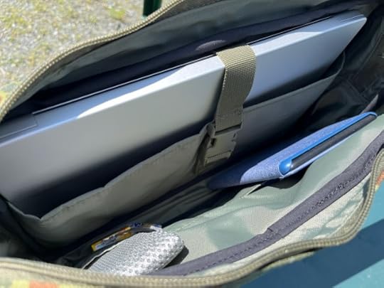 I’ve always been picky about bags, and most of them tend to fall down in at least one category between material, layout, size, craftmanship, or durability. This one is the first that ticks all the boxes for me. It’s the perfect size, just big enough for a 14″ laptop. The internal layout is exactly as I would have designed it, the stitching and detail work are superb, and the material (being from a military backpack) is ridiculously sturdy. They even used one of the backpack straps as the carry strap, repurposed one of the outside gear pockets as an accessory pouch, and used one of the original buckle straps for the laptop compartment. And to top it all off, they sewed on a velcro strip, reattached my old name tape, and took the flag rondel off my old field cap and put it on the messenger bag.