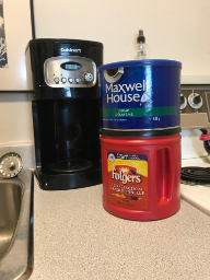 I use filters instead of cleaning the “sieve” thingey in my coffee maker. That’s just a personal choice. (Both filter and grounds can go into the compost; filters can be used for many other things according to Facebook posts I’ve seen; etc.) And I use a big coffee maker not one of those pod ones. A pot can go into the fridge for my iced coffee, or I can reheat mug by mug in the microwave. (If we cover the pot, the coffee tends to stay fresher. I use a dishcloth with a doubled and folded paper towel barrier. Coffee stains.) Of course, I don’t have to make a full pot each time.