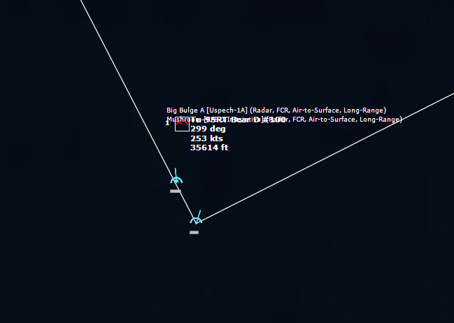 060259Z Bingo fuel, one of the B-52s from Caveman 4 is forced to increase altitude. Tu-128 Fiddlers pounce. The B-52 makes a great effort, and evades 11 air-to-air missiles before it is finally shot down.