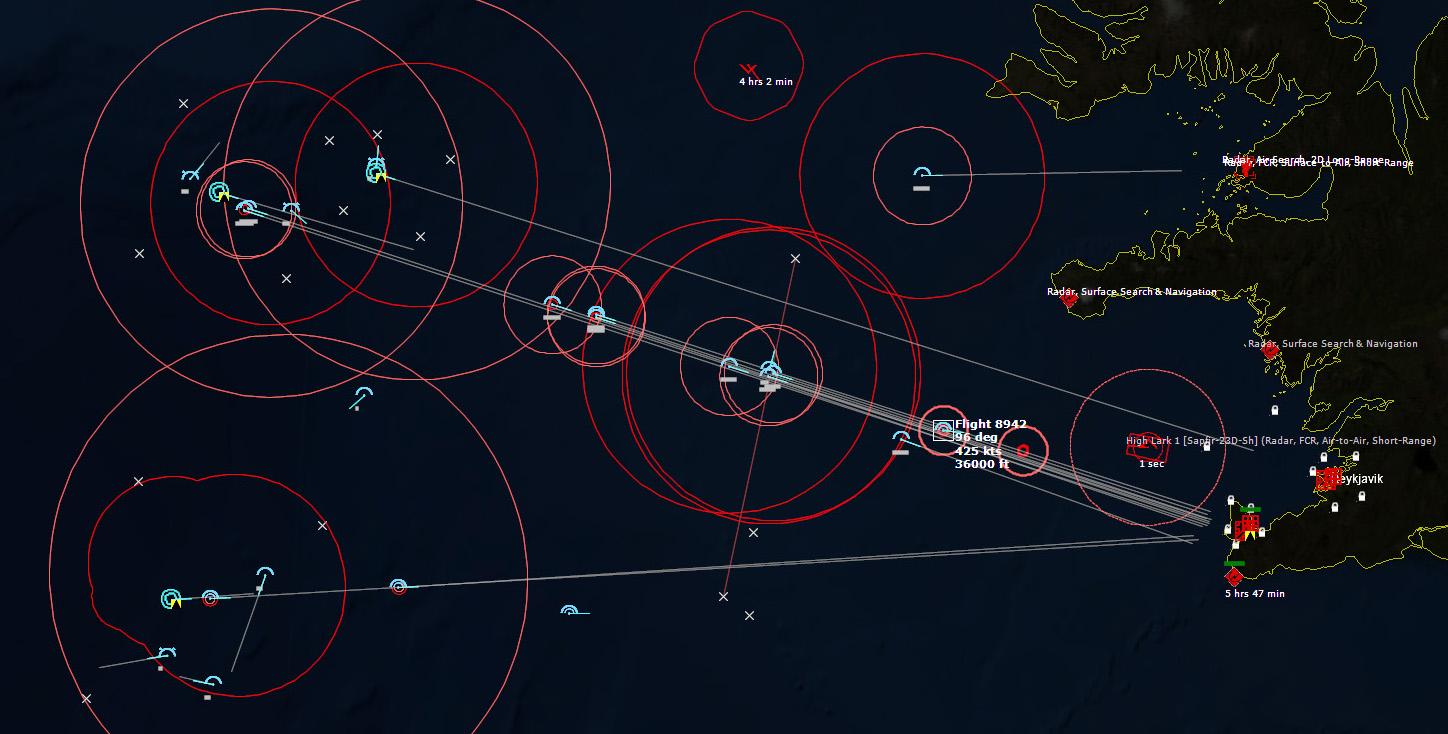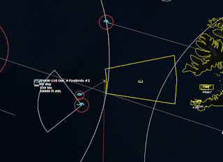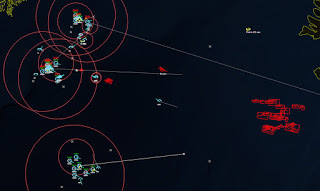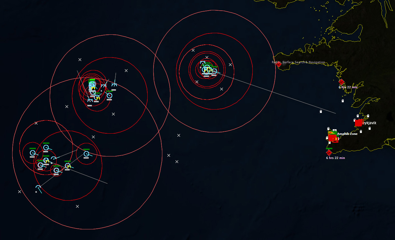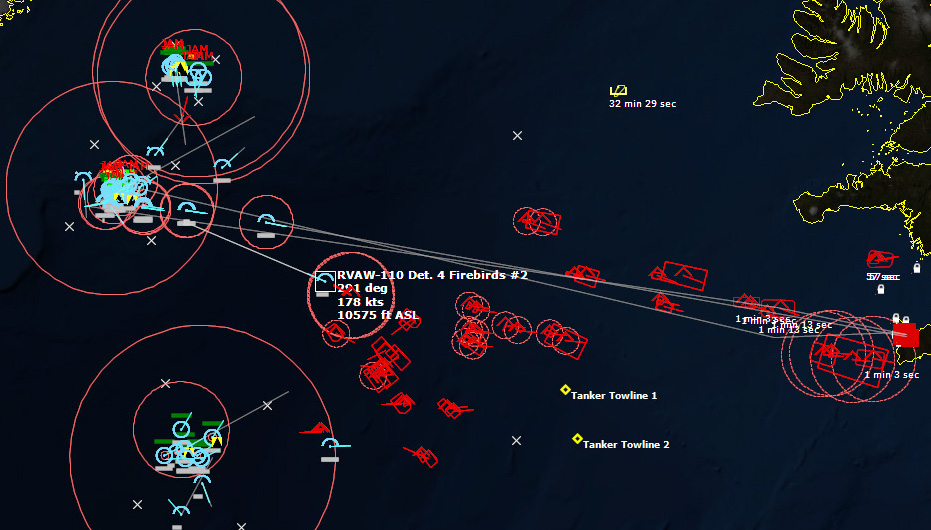 083445Z My E-1B Tracer detects multiple aircraft taking off from Keflavik. I wonder if this is relief for the CAP, or if another strike is forming up. If it's a strike, my ships will be on their own, as all the fighter aircraft are still being readied.