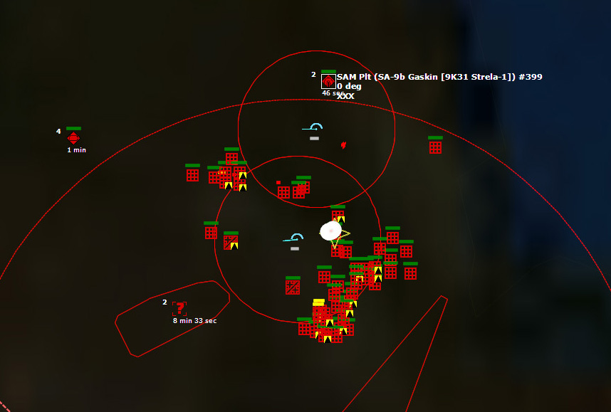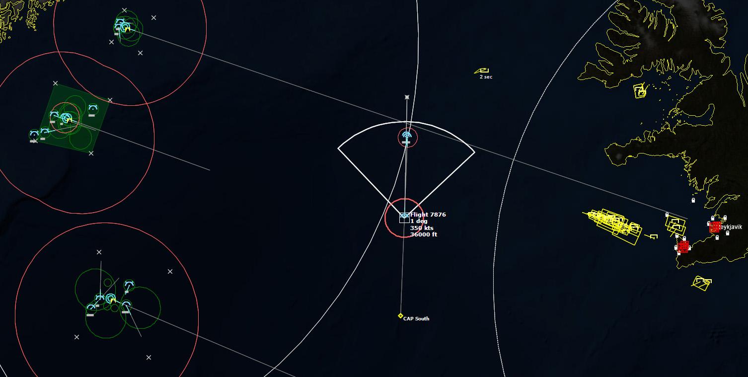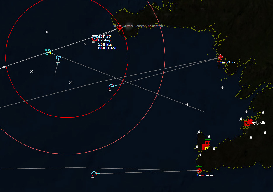 Another strike forms up near KeflavikThe strike package appears to be twelve aircraft, and based on their speeds, I think it might consist of ten MiG-27 Flogger D attack aircraft with two MiG-23 escorts.The strike is closing at 480kts, and it is still ten minutes or so until I can launch any fighters...