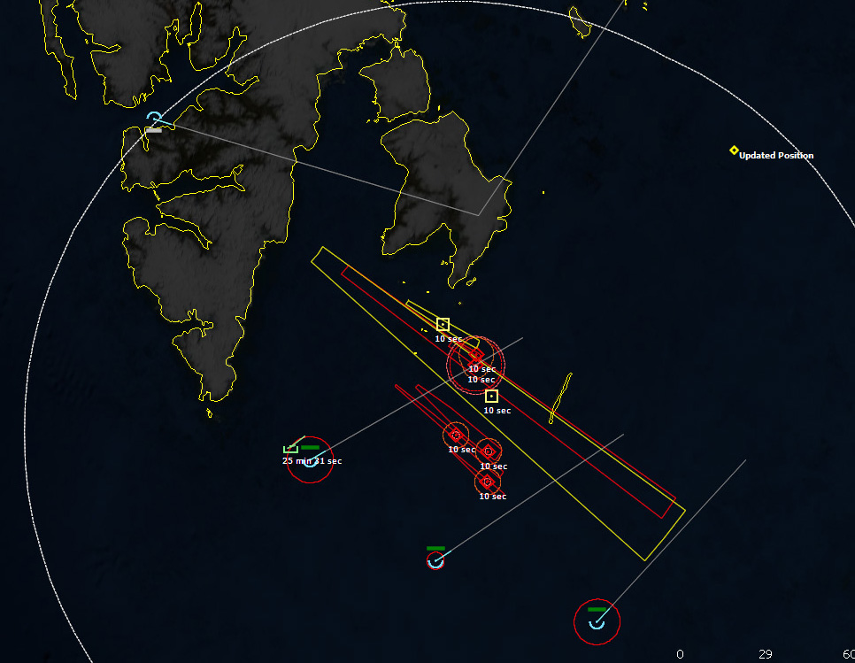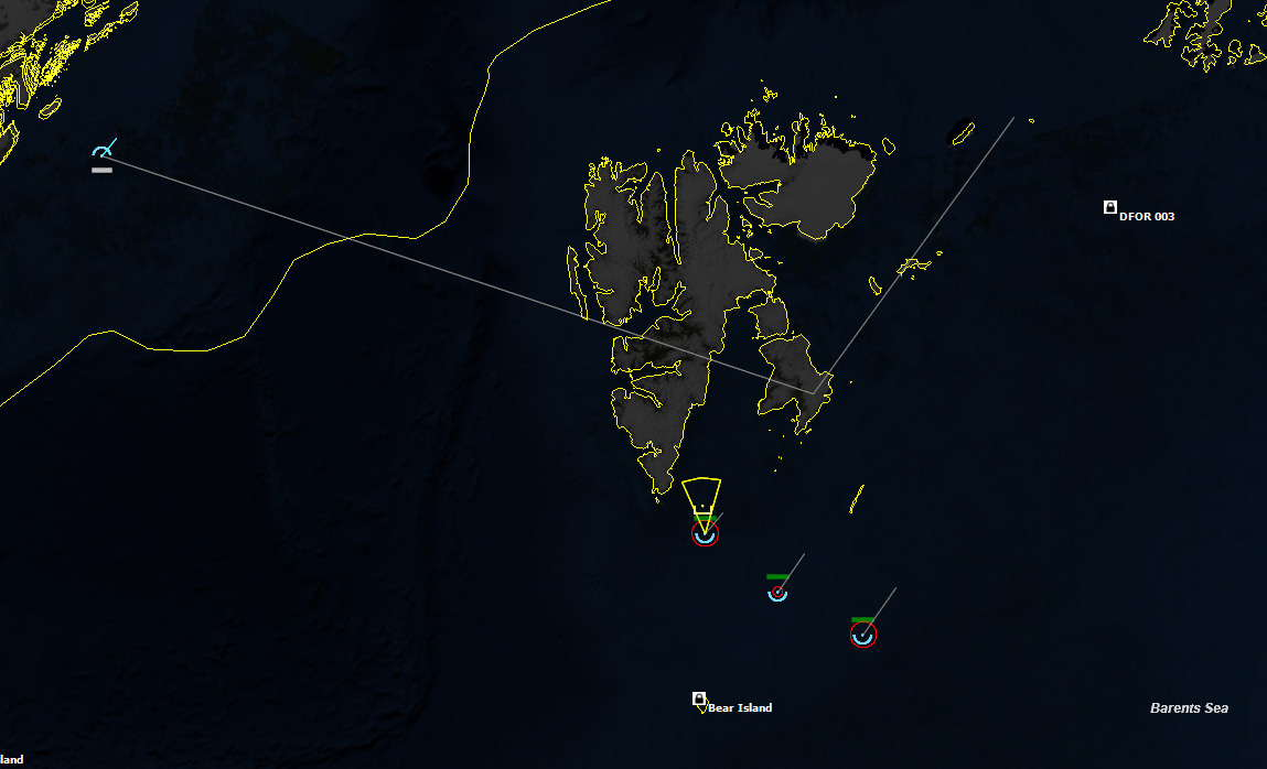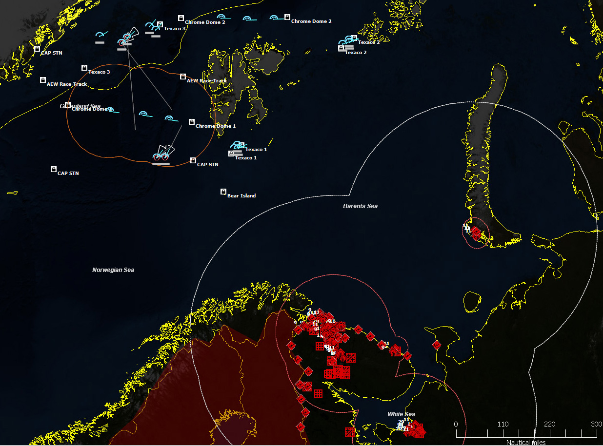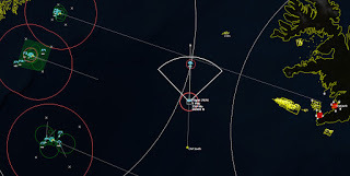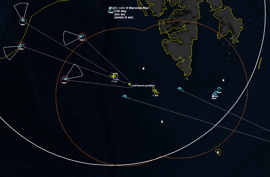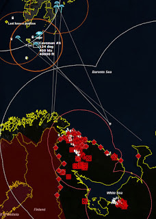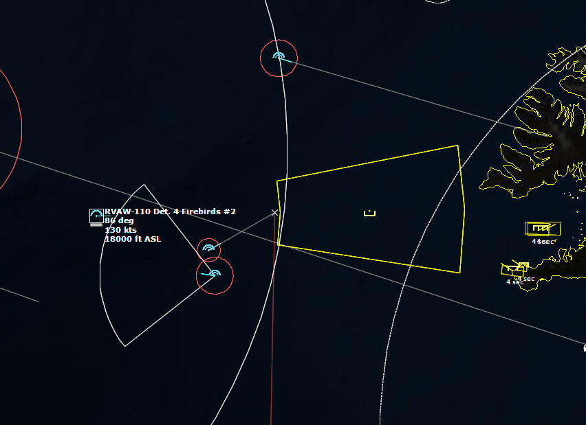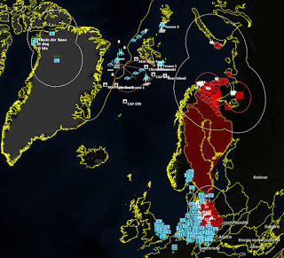 Another Yak-38 Forger is detectedMy Rivet Joint has to run for its life, all the way north of Spitzbergen, but eventually outdistances the Forgers.132149Z My second Rivet Joint arrives on station, and I detect two more Yaks. I'm hoping that with two Rivet joints in the area, I can pinpoint their origin better, and lock down where the Kiev is.