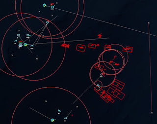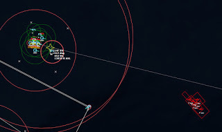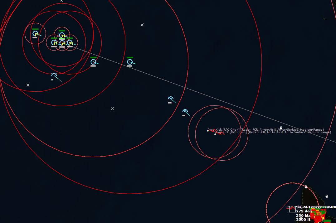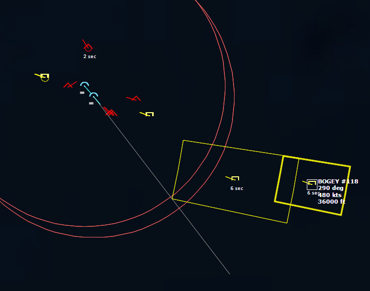 Lots and lots of contactsThe airborne contacts are classified as Yak-38 Forger As, as I suspected. I adjust the course of my Rivet Joint to get a better bearing on them.