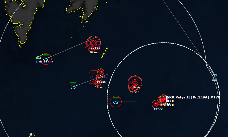 Kiev-class Aircraft Carrier053629Z The contacts are localized and two more are found. One of them is a MPK Poti Mod, a fast patrol-craft.