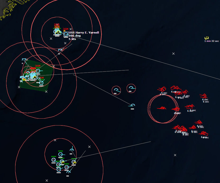 Vampire! Vampire!Eight vampires are inbound. Once they get in range, USS Harry E. Yarnell and USS Farragut begin firing SAMs.