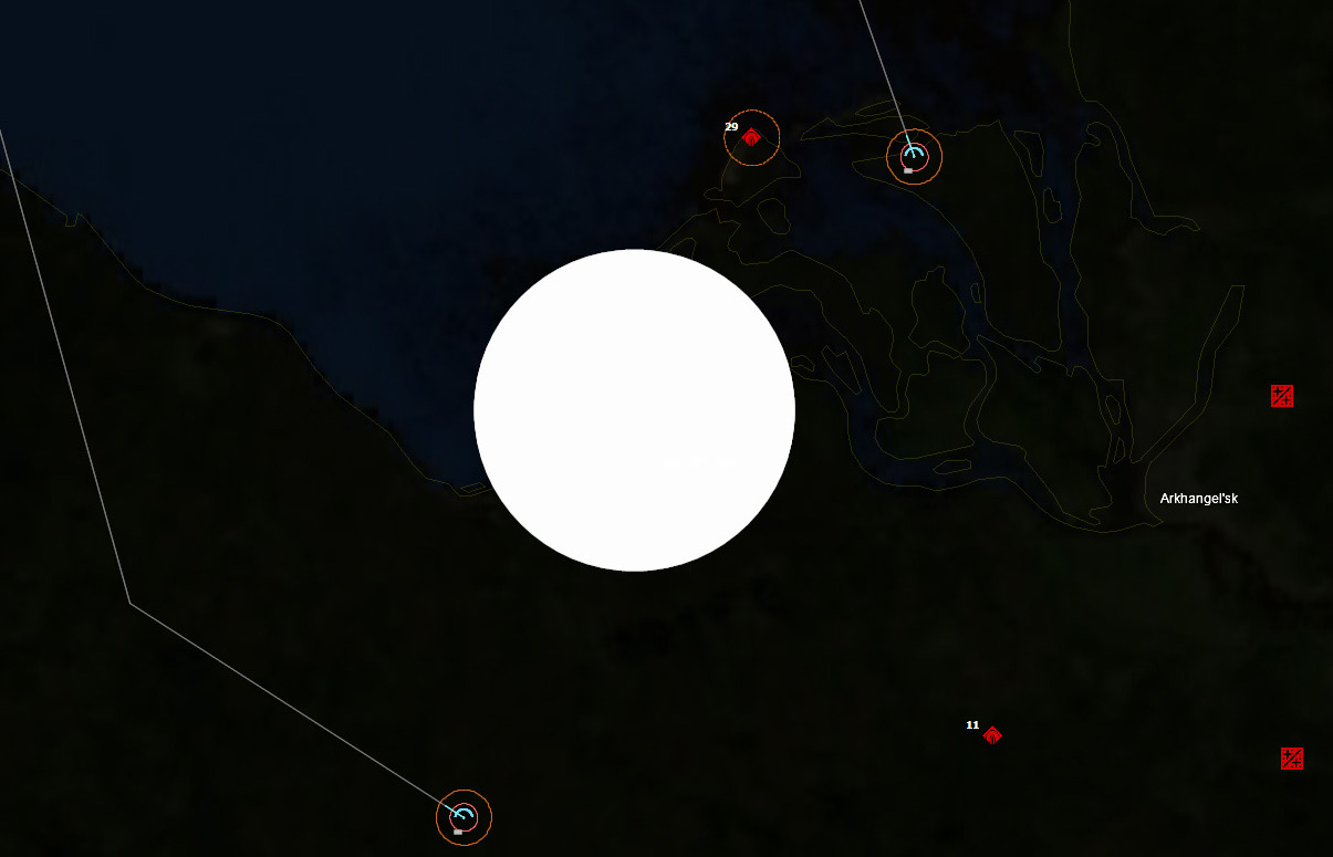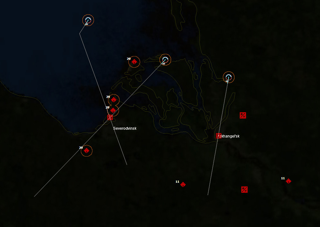 Caveman 4 closes to within 40nm of its targets.043438Z Caveman 4 approaches to within 15nm of Arkhangelsk.