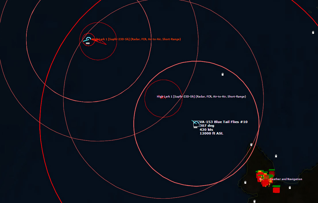 The strike is closing inThen something comes to me. The first strike package consisted of twelve MiG-27s with half a dozen MiG-23 escorts. The second is twelve aircraft, with a group of ten moving at 480kts at 200 feet, its target uncertain, and a pair of aircraft moving at 580kts at 200 feet towards the Iowa group. At first I thought they were more MiG-23 escorts, but they aren't acting like escorts. If they were, they'd be closer to the strike group, and higher in altitude... I begin to suspect they are more MiG-27s... I quickly scan the database, and discover what I feared. MiG-27s are nuclear capable. They can carry the RN-40 30kT tactical nuclear bomb. Given how profligate the Soviets have been with nuclear weapons in this war, I would be foolish to discount the possibility that they are trying again.