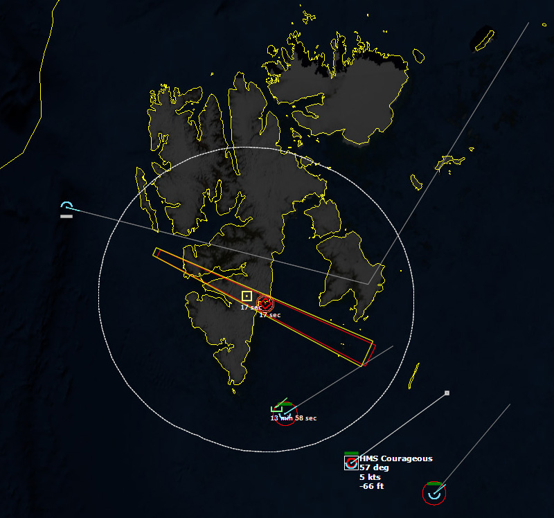 With the Kiev group's position only 12 hours old in the vicinity of southern Spitsbergen, the only units in her path, HMS Courageous, USS Narwhal and USS Tinosa have been ordered to intercept and sink the Kiev battle group.
