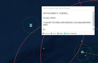 Yarnell is in serious danger...The SAMs miss, and Yarnell is hit by two Keglers. At the same instant, one of the F-8 Crusaders is shot down by a Flogger. So far, the fighters have been utterly useless in breaking up the attack.Yarnell is set ablaze and suffers damage to its UHF radios and some of its radar systems.