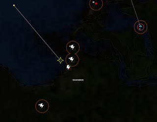 Come on, Rivet Joints, triangulate it...The location of the Yaks is narrowed down, and I place a reference point and send my two subs right for it. Narwhal would have been in great position to attack...provided that is in fact where the Kiev is. I worry that the Courageous and the Tinosa won't be able to catch up.