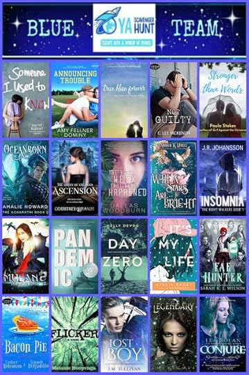 Go to the YA Scavenger Hunt page to find out all about the hunt. There are FOUR contests going on simultaneously, and you can enter one or all! I am part of the BLUE TEAM—but there is also a gold team, a red team, and a purple team. You can enter for each team to win a whole set of different books, plus a $50 Amazon giftcard!