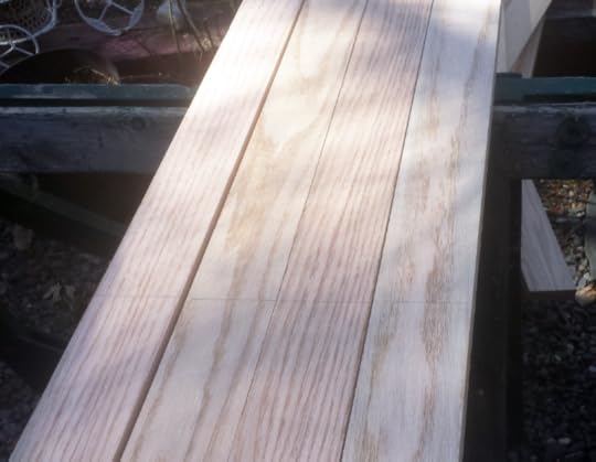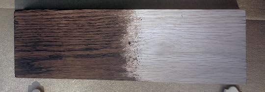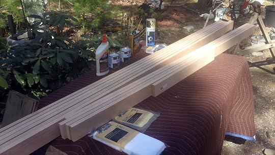 8. With the staining pad, stain the wood. You want to work from the top down, getting both sides as you go. Wipe away any drips immediately.