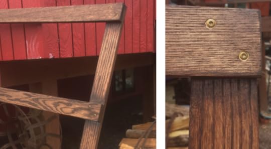 2. Test the stain on the extra test piece and spray paint the hinges with the gold/brass spray paint.