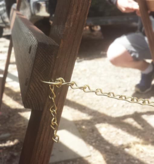 11. Place the brass chain through the cup hooks and voila! The Quilt Rack is finished!