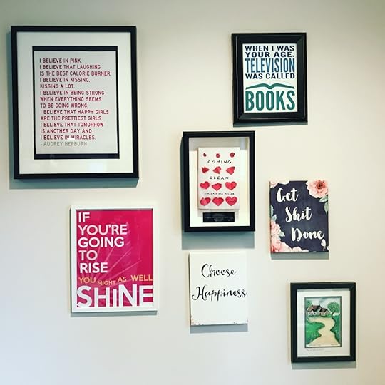 The Fella helped me hang my favorite inspirational art on the wall next to my desk. Now I just need to get my desk in order.