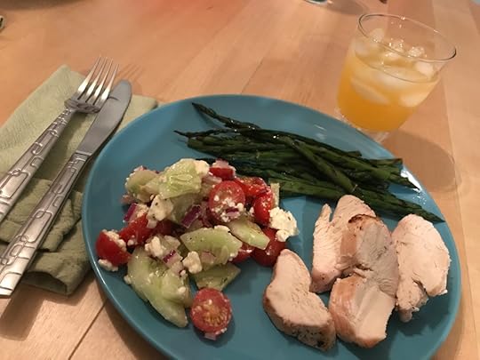 Dinner: Roast chicken, asparagus and salad made from veggies my BFF grew in her garden.