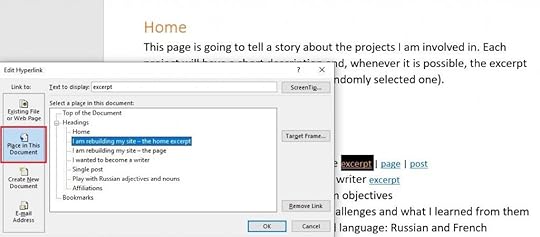 The process of building a conceptual mockup is simple. First, I write the page name and I make it Heading 1. Then, I write a short description about whatever it’s going be there. It doesn’t need to be a brilliant piece of literature. Poor grammar and bad spelling are welcome. Most of the time this material will be discarded as you advance to the next level: a low-fidelity visual mockup. When what_else() returns false, I start linking together the information I have uncovered. This is the moment when making the page titles Heading 1 pays off. You can easily reference them: