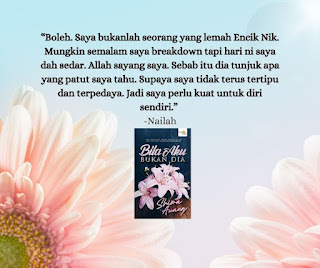 “Ini bilik awak dan itu bilik saya.” Suara Anuar itu membuat Nailah berpaling. Dahinya berkerut. Kenapa perlu tinggal dalam dua bilik? Bukankah mereka suami isteri ke? Hati merusuh.“Ilah jangan salah sangka. Kita tetap tidur sebilik tapi saya ada kalanya perlukan ruang sendiri. Awak boleh fahamkan?” Anuar mendekati Nailah apabila tidak mendengar suaranya.Nailah terkebil-kebil memandang wajah tampan suaminya. Selangkah demi selangkah lelaki itu mendekatinya.“Kerja saya stress, jadi saya tak nak mood tak baik saya terkena tempiasnya kat awak. Jadi bila mood saya tak okey saya lebih suka sendirian. Tak suka orang lain ganggu.”“Tapi kitakan dah jadi suami isteri. Bukan ke tugas isteri menghiburkan hati suami. Meringankan beban yang suami tanggung. Saya tak kisah susah. Saya nak sama-sama berkongsi susah senang bersama awak,” balas Nailah. Dia tunduk. Hati memang terasa apabila suaminya cakap ini bilik dia dan itu biliknya.“Saya tahu tapi kita perlukan masa untuk membiasakan diri dengan kehidupan baru ni. Jadi please, fahami saya. Saya tahu awak isteri saya. Saya tahu kita kena belajar hidup bersama. But, ada certain part dalam hidup saya susah saya nak ubah dan perlukan masa. Saya harap Ilah faham.” Lembut suara Anuar memujuk. Kedua belah bahu Nailah dipegang dan dia tunduk menatap mata Nailah, memohon pengertian.Rela dalam terpaksa Nailah angguk. Mungkin dia perlu banyak bertoleransi dalam perhubungan ini.“Terima kasih sayang.” Anuar merapatkan tubuh mereka. Kedua tangannya merangkul tubuh kecil Nailah erat ke dadanya.Nailah menarik nafas panjang. Mata dipejamkan dan haruman suaminya meresap ke dalam jiwanya. Hati kembali tenang. Pelukan dibalas. Mereka berkeadaan begitu buat seketika sebelum pelukan terlerai.“Pergilah masuk berehat dulu. Saya keluar kejap beli makanan. Tentu awak laparkan.”Nailah senyum dan angguk.“Tapi awak patut rehat. Penat drive tadi.”Anuar senyum, tangannya diangkat mengusap kepala Nailah.“Penat sikit tapi baru dapat tenaga tadi terus hilang penat tu.” Manis mulutnya mengusik Nailah.Wajah Nailah merah. Naif.