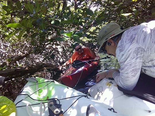 This will be my second season as a guide for the Florida Keys Wildlife Society’s Full Moon Kayak Trips . We head out from the Old Wooden Bridge Marina on Big Pine Key, across the channel and first to a mangrove tunnel before paddling around the northern tip of No Name Key. A few of us got together this past Saturday to check out and trim the tunnel. Afterwards we paddled through another longer tunnel to a salt pond, which is basically a tidal lake.