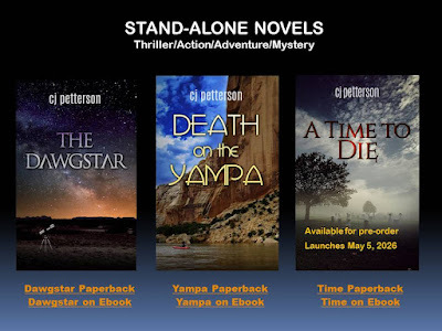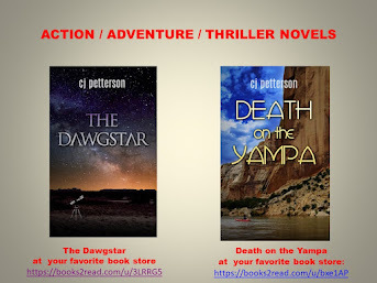 My fast-paced thriller/suspense novels with a touch of romance, THE DAWGSTAR and DEATH ON THE YAMPA, areavailable on Amazon or through your favorite e-Tailer and bookstore.