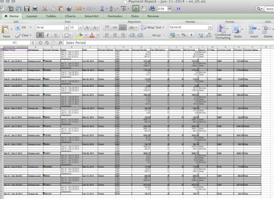 I will post the excel photos that go with these payments. Amazon has a new feature in which they list out the payments that you have received, however, being a new feature, these reports can only go back to November 2013. So for November 2013 on, I will use this new feature. This adds a quirk to the calculations, because of the fact that Amazon pays authors ninety days after a month in which they’ve accumulated $100 in sales. Because I did not meet this criteria in any currencies other than GBP or USD until November, I will leave the calculations of the royalties accumulated in those months in other currencies out of the equation to avoid double counting them.