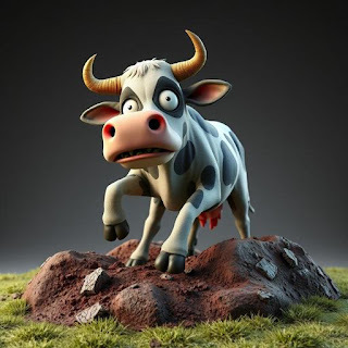 Yow! Just how many times has this poor cow died? You'd think that after a while the ranch owner might just throw in the towel and quit performing his voodoo rites to bring back his beloved cow.