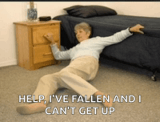 And there she goes! For you old-timers, do you remember these commercials that used to show up late on syndicated TV channels? Of the old lady laying on the floor and reading (quite poorly) off of cue cards and blasely announcing, "Help. I've fallen and I can't get up." The commercials that had myself and other juvie high school guys laughing and imitating all the way out to our cars to skip class?