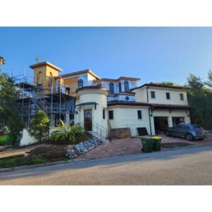 But here is a fun fact! Note the Pine Tree on the top of the tower! It is to commemorate the “Topping Off” as the last piece of structure in our remodel is put in place. It’s also been said that when all the pine needles dry and fall off it indicates to the builder that the wood inside has cured and is ready for the drywall.