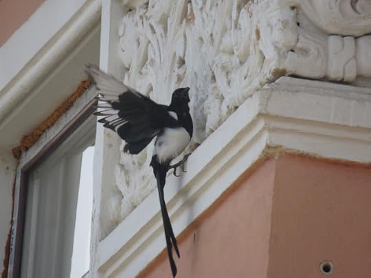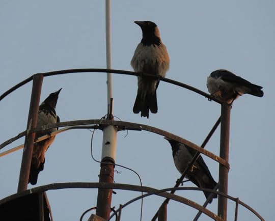 Ieri, făcând eu o pauză de laptop, am ieșit în balcon. Am urmărit pițigoii mari și suri și țicleanul care veneau la geamul bucătăriei, la semințe, am salutat-o pe vecina veveriță care țâșnea de pe o creangă pe alta a unui copac, am ascultat o discuție dintre coțofene, când... Am auzit un croncănit diferit trecând pe deasupra copacilor.