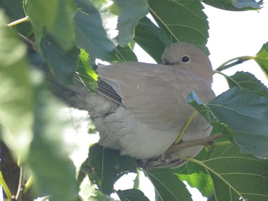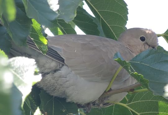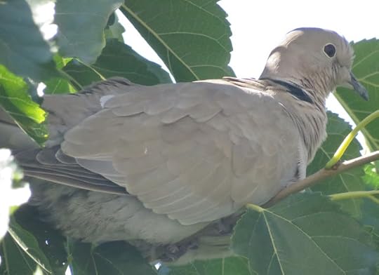 Guguștiuc (Streptopelia decaocto)Un porumbel gulerat în vârful unui copac, pe care l-am fotografiat din balcon: