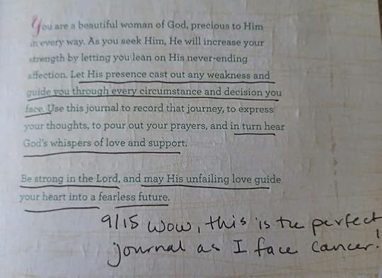 I don’t journal every day. I’d only gotten a few pages in when I was diagnosed with cancer on September 13th. Writing out a prayer the next morning, I took great comfort in the bible verse at the bottom of the page.