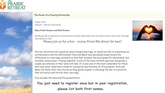 On February 9, in Wheatland, Iowa, Nick and I will be sharing what we have learned and provide guidance in unlocking the key to the practice of praying together.