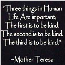 I have always tried to practice kindness in my own life, whether it be welcoming a new member to a team, smiling and saying 'Hi!' to a stranger on the street, letting someone, with fewer groceries, in front of me in line, giving up my seat to someone who needs it more or sticking up for the grocery girl who is being embarassed by a rude customer. Any act of kindness is an easy gift to give. I'm afraid I have no respect for unkind people, people who set out to make others feel bad, who take out their own insecurities or unhappiness by bashing others, gossiping or making the check-out girl feel inferior. It's really not that hard to be kind. When you see someone's face light up as the result of your kindness, how can you not?