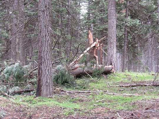 (recently fallen Douglas fir—of its own accord, not something we did! We can’t legally cut it up for firewood—besides the green needles, it’s too big in diameter. But it’s an example of what firewood cutting on the national forest is about.)