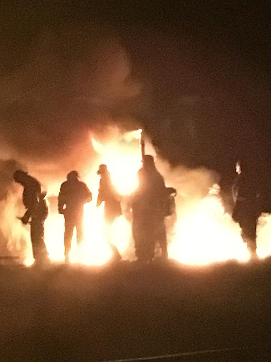 And from then on it was fabulous or completely bonkers if you are looking at it from a health and safety point of view as the aim of the game is obviously to burn the Clavie to dismantle the staves and create embers for sharing amongst the locals. But this barrel takes some burning. I have no idea what was being thrown onto it , but with huge cheers accompanying every explosion as small nuclear like clouds erupted into the night sky and beautiful golden sparks drifted down from the hill, the spectacle was awesome. To virgin onlookers, the first explosion was a bit of a shock, especially when half the hillside seemed to be on fire but with each explosion, our twenty-first century risk-averse sensitivities went gleefully up with the flames and our cheers got louder and more excitable. Our feet were still frozen but it didn't matter. We were children again. We were transfixed.For there is something about a fire that brings people together and from time immemorial, fire has represented cleansing, purification and rebirth. It is an incredibly powerful symbol. And as we witnessed this wonderful event , we all felt something which is very hard to describe, a feeling that comes from being part of a ritual that has taken place in the same spot, for what some people say is 1600 years. For a fleeting moment we were in touch with our ancient past. When I was trying to describe it to another friend ,who had been many years before, she used the word visceral, meaning basing the experience on deep feelings and emotions rather than logic and reason. That was the word I was looking for. You can tell she went to a posh school.And so it was, that the fire finally went out and the crowds drifted peacefully away and as we walked up the street towards the car, the aroma and whisps of smoke still hanging on the crisp night air, I watched a young local couple walking ahead. The proud owner of a burning ember, the young guy clutched his prize and as he showed it to his girl she put her arm around him and kissed him on the cheek. I almost cried. I hope the Clavie brings them much health and happiness. Back in the warm sanctuary of The Bandstand in Nairn, we ordered Scampi and chips, well soup and chips "for the vegan" and I even had a small whisky. I never drink whisky but it seemed appropriate and somehow elemental, to be partaking of the "Water of Life" after a fire festival. For your information it was a Bruichladdich single malt from Islay, so warming and delicious, I even drank it neat. It tasted like nectar.