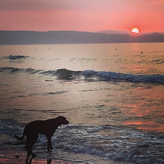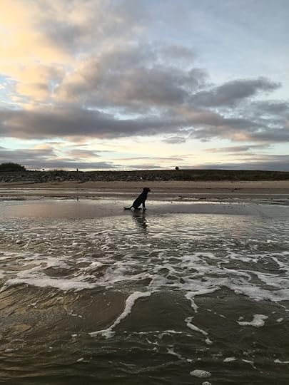 And I was right, I am chief treat and bone purchaser, vet appointment monitor, poop bag supplier and tennis ball provider and, of course, I do the longest walks. But am I bothered? Absolutley not because our early morning ritual has become something so special that I am truly grateful that Roxy came into our lives. Now dont get me wrong, living on the edge of our small town and pretty close to the beach, I was no stranger to a stroll on the sand but since I've had a companion, the beach has taken on a whole new meaning, as even though we take off on the same 3 mile circuit every morning, through the fields and then onto the beach, like the weather and the sky, no walk is ever the same. Every day the landscape has offered up something new, either through the gentle life cycles of the plants, the wildlife, (of which I have to be far more observant than speed merchant Roxy), or the natural, ever changing, seaweedy debris on the beach. Walking the same route every day isn't boring, because if you allow yourself to leave your headphones at home, free up all your senses and really observe what's going on around you, it becomes something of a meditation and an observation of everything that is wonderful about the planet we inhabit. Many a plot twist for my latest book Trust Me, I'm a Personal Trainer has been worked out during this sensory reverie and thankfully, Roxy doesnt think I'm mad when I talk to myself. At least I hope she doesn't.
