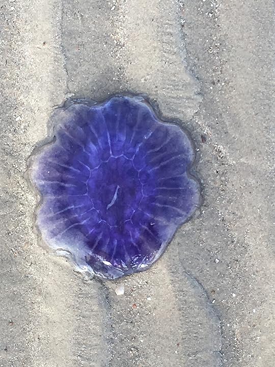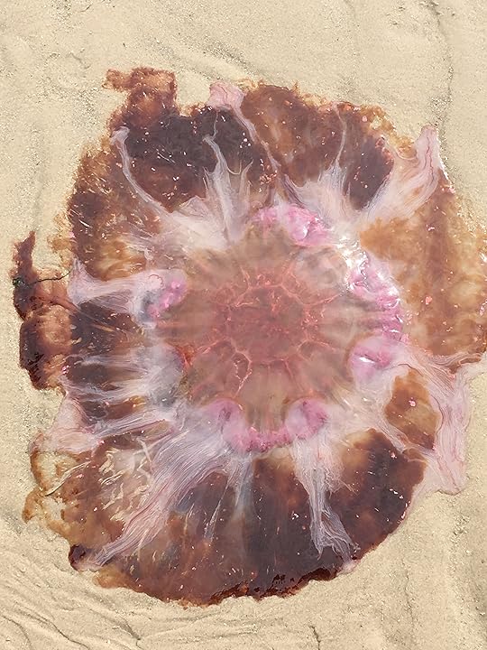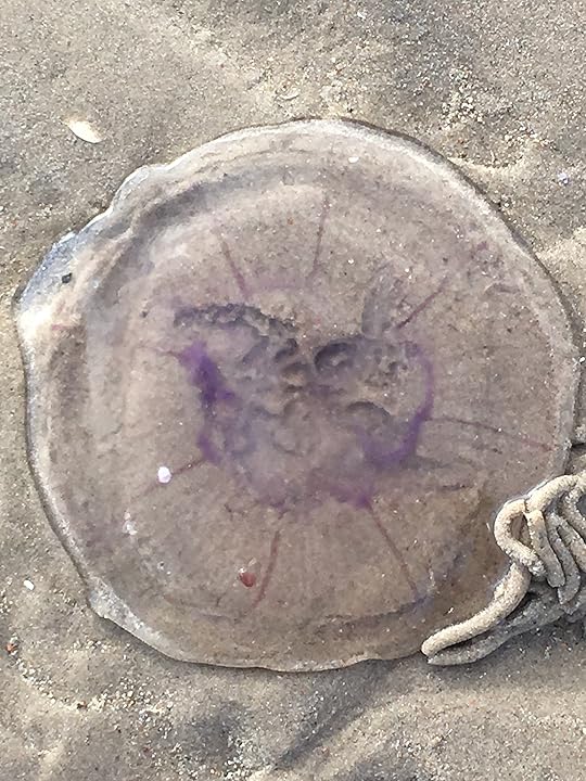 But therein lies the next challenge, as yesterday morning I had my second test and it was a lot more difficult than the first one. You see, up until yesterday, the sea had been as calm as a lake, the sun has been shining and the water has enticed me in with a promise of clear waters, a view of it's sandy bottom and the warmth of the sun on my face. Not so yesterday, or today, as the skies had darkened, the waves were rolling, not quite surfer level but still rolling and more nerve wracking for me, I couldnt see the bottom, or anything really, other than the swirling water and a greater abundance of seaweed. Which is a bit of a problem as I'm actually a bit of a wuss when it comes to unidentifiable sea creatures and unfortunatley I know that they are in there because I've seen them. Thankfully, so far, I've not seen them in the water, but I've seen them washed up on the beach. It would appear that they definitely prefer the town beach but who knows where they are, they could be anywhere, floating about quite happily, all pretty and elegant but with a nasty sting in their tentacles. Apparently the Lion's Mane Jellyfish is a real bastard,