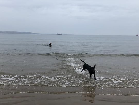 So as the clocks have gone back, I thought it was time for a wee update on the swimming challenge and I am proud to say that, hopefully, I'm winning the bet. Hubby hasn't actually told me what his bet with himself is yet, so consequently, I'm still going in and still haven't got a wetsuit. Roxy has been a bit ambivalent depending on her mood. She was in season this month and maybe decided that she couldn't face it and instead watched dutifully from the beach, but this morning she was back in again, jumping the waves and having a good time. I haven't managed every day though, as with summer well and truly a distant memory, autumn has brought a few new challenges.The first challenge has been the wind, and it's beaten me on several occassions. Storm Ophelia wasn't to be trifled with and the last week has also brought more gales and horrendous downpours. The wind makes things tricky, not from a swimming point of view, as the wind makes it fun in the waves and the sea still isn't freezing. I've not had to scream yet but I'm sure that will come as the temperatures continue to plumet. No, the problem with the wind, is that it's made getting out of the water a bit of a challenge as I've tried to hold onto a towel and then my clothes as I've battled to get them on over a wet swimsuit, all the while keeping an eye on a frisky dog in season. I've just about managed to deal with it by taking a bin bag, into which I put my rucksack and clothes so that they don't blow away. Like a good mountaineer, which I'm not, I have my clothes turned the right way, all in an orderly pile in the rucksack, ready to put on as soon as I get out. It seems to work, although I haven't had to deal with wind and rain yet. That will probably be a step too far. The thought of getting wet on top of wet with a two mile hike back, isnt actually very appealing. Time will no doubt tell, but swimming in a cruel, north-east wind, is probably complete madness. The other challenge has been the tide, which was something I hadn't considered; the issue being that when the tide is out, it really is out, and one morning I waded out quite a distance before laying down in about a foot or water. When the tide is out, it's almost Weston-Super-Mare in minature. For anyone who was ever dragged there as a child for a day out and then spent the whole day walking miles to reach the sea to fill your bucket with water,you'll get my drift. This isn't on that scale, but I've been surprised at just how shallow the water is, and to be honest it's a bit embarrassing looking as though you're swimming, then standing up trying to look like a Bond heroine in about six inches of water.