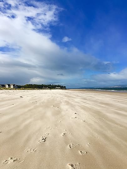 And amazingly, the sea has been warm. Yes I did say warm. I do not lie. You may not believe it possible for the Moray Firth to be anything other than baltic, but it's true. It's warm. It's so warm, that this morning I finally took the plunge and went in. I'd been building up to it, inching ever fiurther in up to my thighs over the past few weeks but hadnt been brave enough to put the cossie on and just go for it. Sometimes it just takes a crazy friend to help you out and so it was that at 6.30 this morning, she turned up, silouhetted against the sun like a 007 heroine and kept me company on my first plunge. She brought me webbed gloves and goggles. I brought a flask of Earl Grey tea and a packet of ginger nuts. Not that I needed it, as it was, as I said before, warm. It was warmer than the hotel pool I swam in in Ibiza. The water was warm, the sun was shining, the beach was empty and we didn't drown and because the ground is so dry and the grassy paths have turned into carpets, I even managed to walk all the way home with bare feet. I probably looked completely deranged but for me this morning was just about perfect.