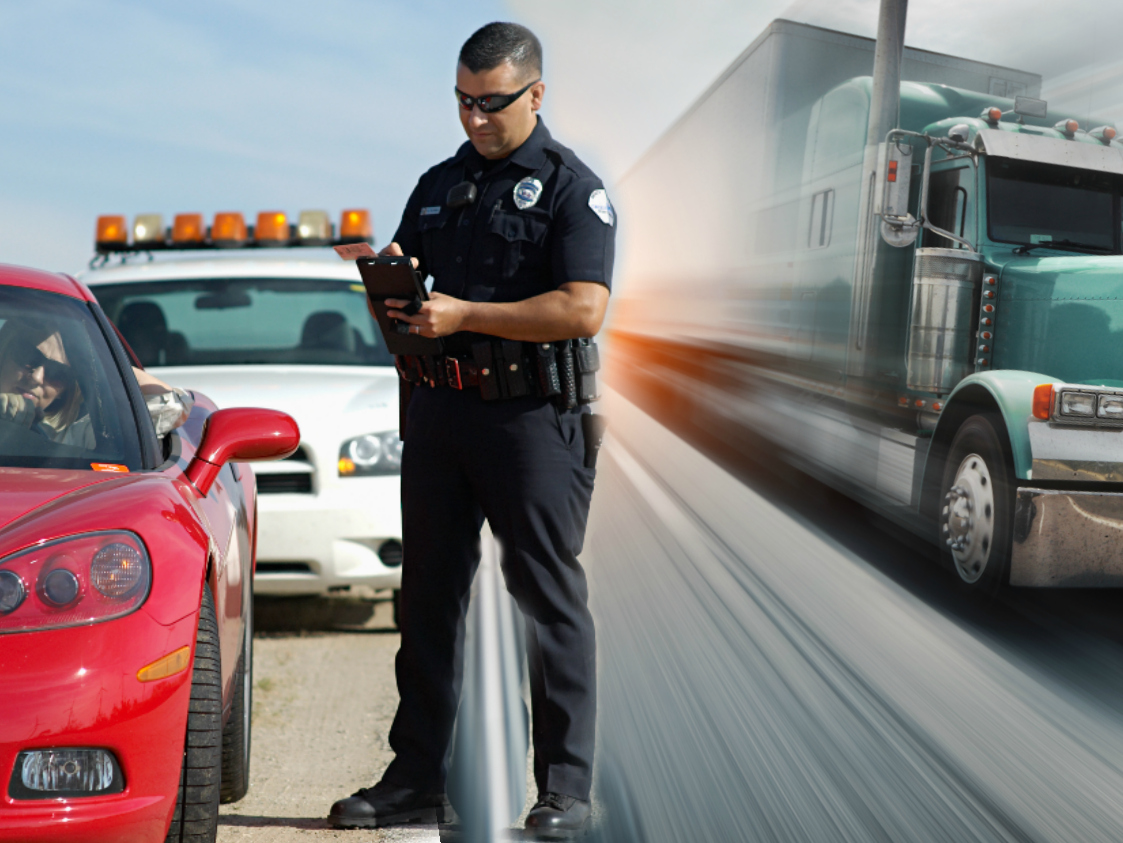 Busting the flashy car for 75 mph to let the 250 mph Peterbilt pass