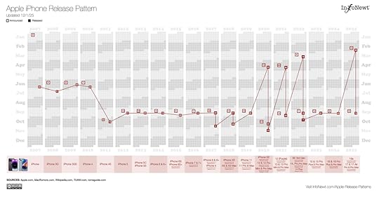 Apple traditionally doesn't release any products during December, so all of my Apple Release Patterns infographics are complete and up-to-date for 2025. You can see them all on the InfoNewt site, and that’s where I continue to maintain them and post updates as Apple releases new products and updates.