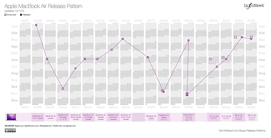 You can see that some products, like the iPhone, follow a fairly regular and predictable release schedule. Other products, like the MacBook Air, are much more unpredictable.