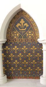 Of course, restoring the medieval was never quite as easy as might first appear even for dedicated Victorians. Whilst an extensive network of great churches and cathedrals allowed architects of the Gothic Revival to study the elements of structural design, and illuminated books and manuscripts revealed the typical motifs and colours of interior decoration and vestments, two essential art forms eluded the revivalists’ early efforts to recreate the medieval church.